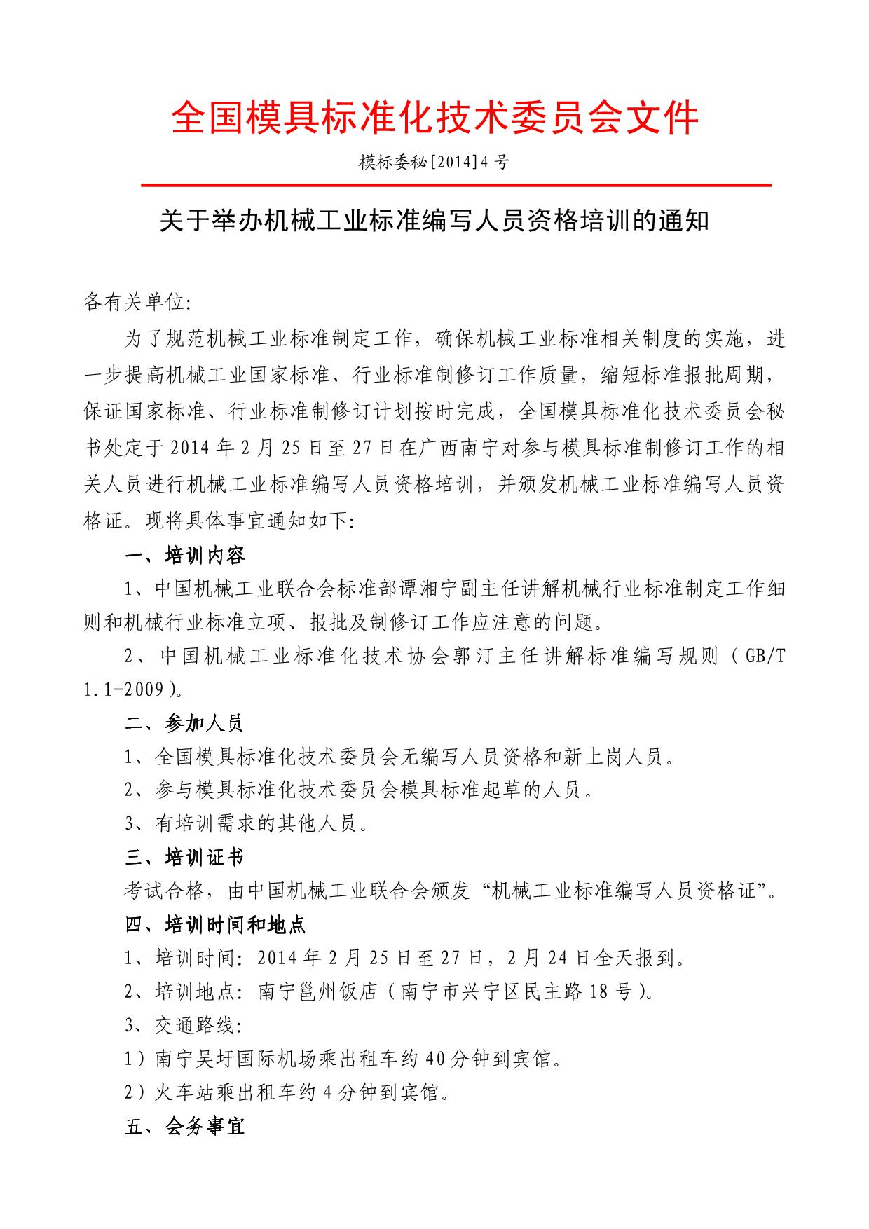 關(guān)于舉辦機械工業(yè)標準編寫(xiě)人員資格培訓的通知