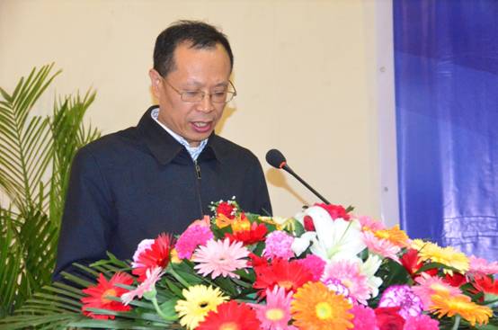 山西省模具工業(yè)協(xié)會(huì )第一屆會(huì )長(cháng)、富士康太原模具工廠(chǎng)李茂軒發(fā)表就職演說(shuō)。