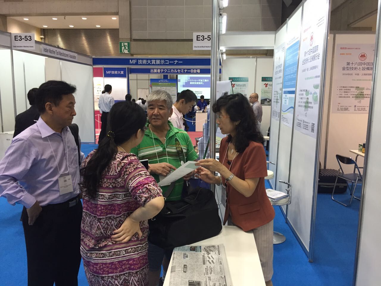 2015年7月15日至18日,中國模具工業(yè)協(xié)會(huì )常務(wù)副會(huì )長(cháng)兼秘書(shū)長(cháng)武兵書(shū),常務(wù)副秘書(shū)長(cháng)秦珂及上海國展模具展項目余國慶總監等率代表團,參加了于2015年7月15日至18日在東京國際展覽中心舉辦的MF-TOKYO 2015東京沖壓•鈑金•成型加工展,同時(shí)中國模協(xié)帶去了一汽模具、天汽模具、中泰、大連神通科技等模具企業(yè)的沖壓模具與模具制件產(chǎn)品資料,與現場(chǎng)的展商、觀(guān)眾交流;在現場(chǎng)推介DMC2016國際模展。