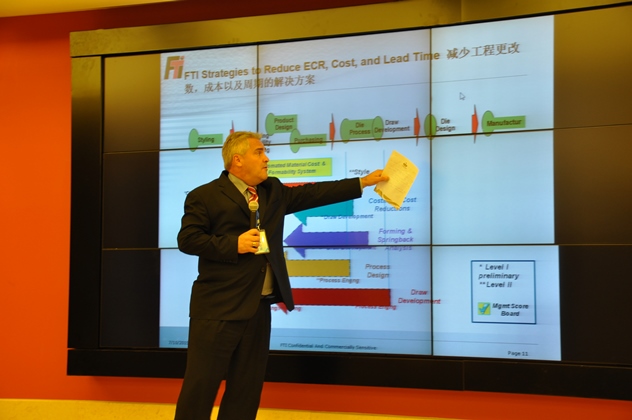 工業(yè)4.0下汽車(chē)模具技術(shù)交流和研討會(huì )由汽模委秘書(shū)邢忠憲主持,華中科技大學(xué)柳玉起教授做了汽車(chē)覆蓋件智能化設計與成形模擬的技術(shù)報告;加拿大FTI公司全球副總裁麥克做了覆蓋件工藝工程革新:全球領(lǐng)先的工程和成本策略和解決方案的技術(shù)報告;美國ETA公司徐金波經(jīng)理做了仿真分析中熱成形中的應用的技術(shù)報告;CAXA數碼大方的楊維明副總經(jīng)理做了模具行業(yè)精益研發(fā)創(chuàng )新服務(wù)平臺的技術(shù)報告;美國SMIRT WERE INC 公司 Mr. Cosimo Galante工業(yè)顧問(wèn)做了為沖壓模具制造量身定制的軟件方案的技術(shù)報告。來(lái)自中國,美國,加拿大的各位專(zhuān)家針對汽車(chē)沖壓模具的技術(shù)、設計、制造、成本控制、等一系列問(wèn)題的解決方案,以及精益研發(fā)創(chuàng )新平臺等精彩精辟的演講,使大家受益匪淺,實(shí)時(shí)掌握國際汽車(chē)模具技術(shù)的新動(dòng)態(tài)、新觀(guān)念、新方法、新思維、新技術(shù)。