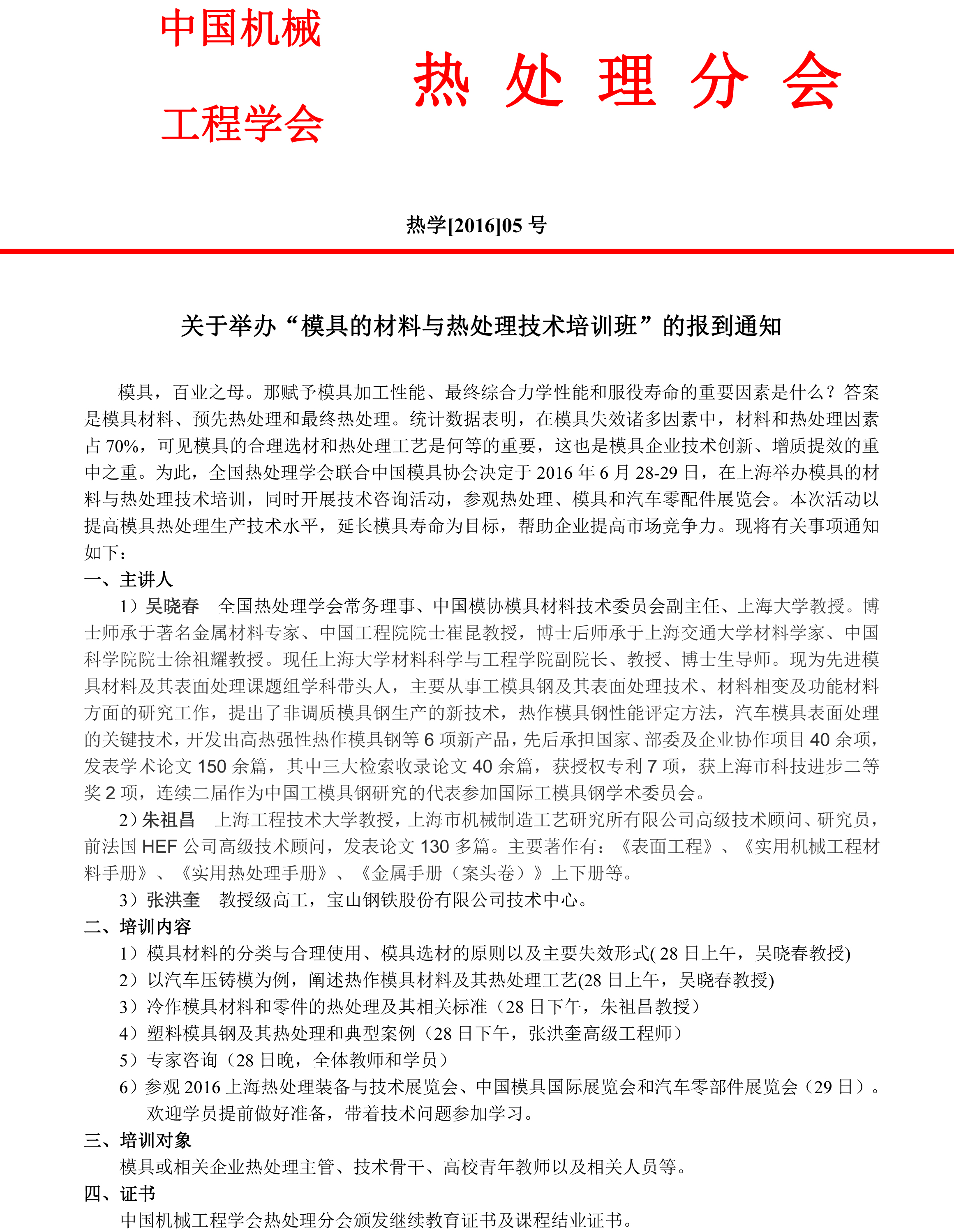 關(guān)于舉辦“模具材料與熱處理技術(shù)培訓”的通知