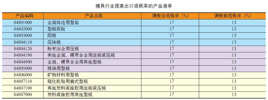 模具行業(yè):提高出口退稅率的產(chǎn)品稅則號列12項