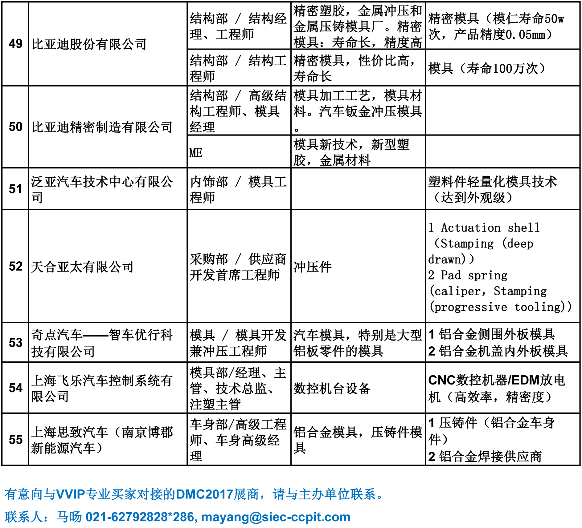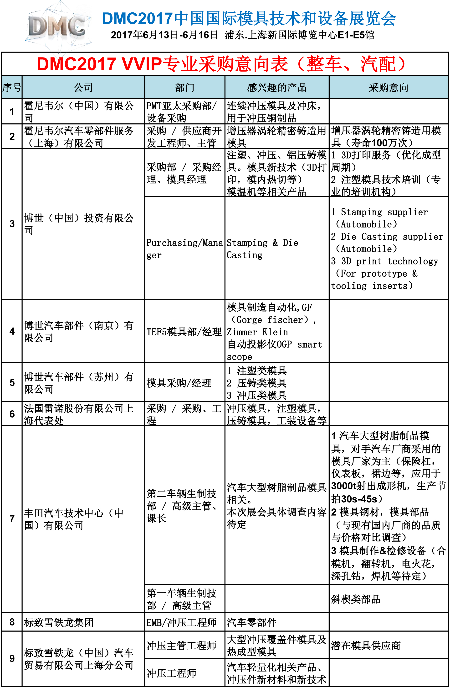 DMC2017 VVIP專(zhuān)業(yè)采購意向表(整車(chē)、汽配)