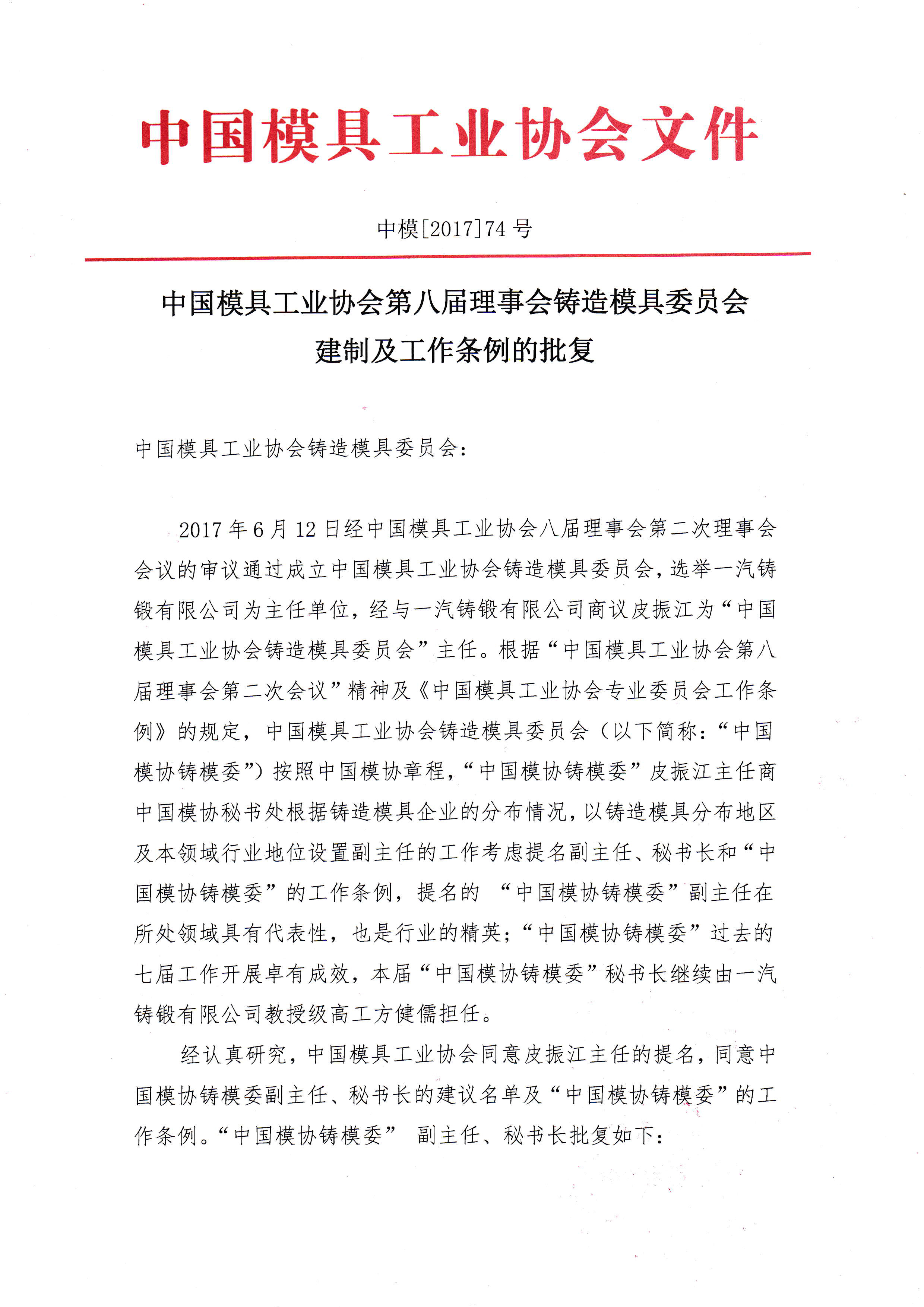 鑄造模具委員會(huì )建制及工作條例的批復
