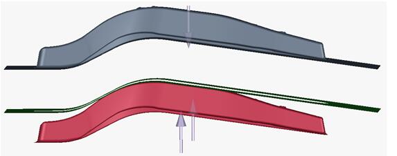 回彈補償原理[8]:利用有限元數值模擬計算回彈,然后在預估有回彈的區域作出反方向的補償值,使零件成形后的反彈正好與補償值抵消,從而得到合格產(chǎn)品。