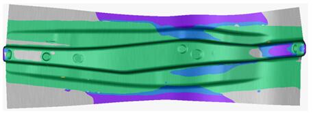 CAE回彈補償技術(shù)的前提是要先對零件的回彈趨勢和回彈量進(jìn)行預測,即利用CAE模擬軟件對零件進(jìn)行全工序成形及回彈分析,確保零件成形狀態(tài)良好,在工藝設計階段對可能出現的缺陷進(jìn)行預測并消除,為回彈補償提供較為可靠的依據[7]。