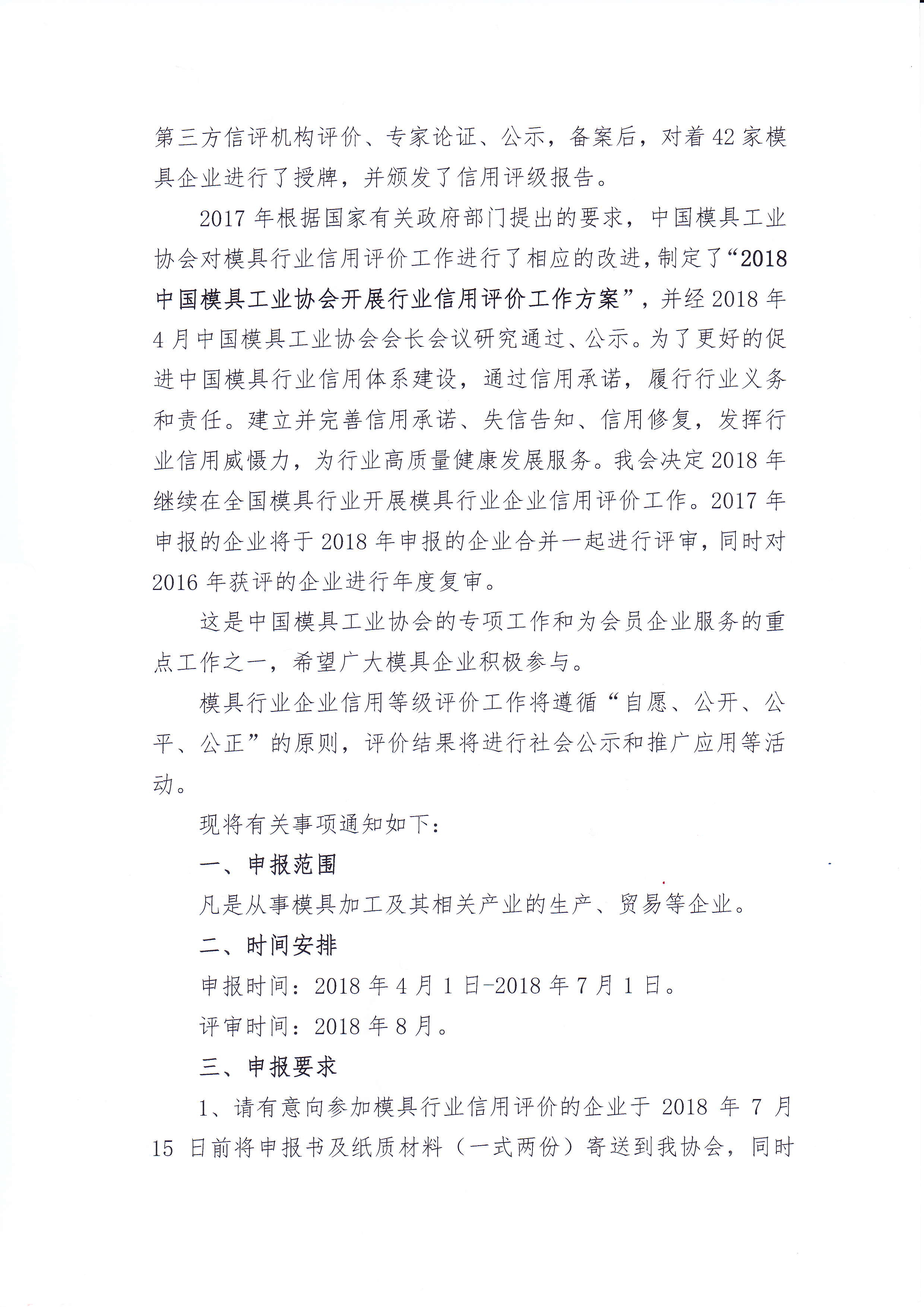附件一:2018中國模具工業(yè)協(xié)會(huì )開(kāi)展行業(yè)信用評價(jià)工作方案.pdf