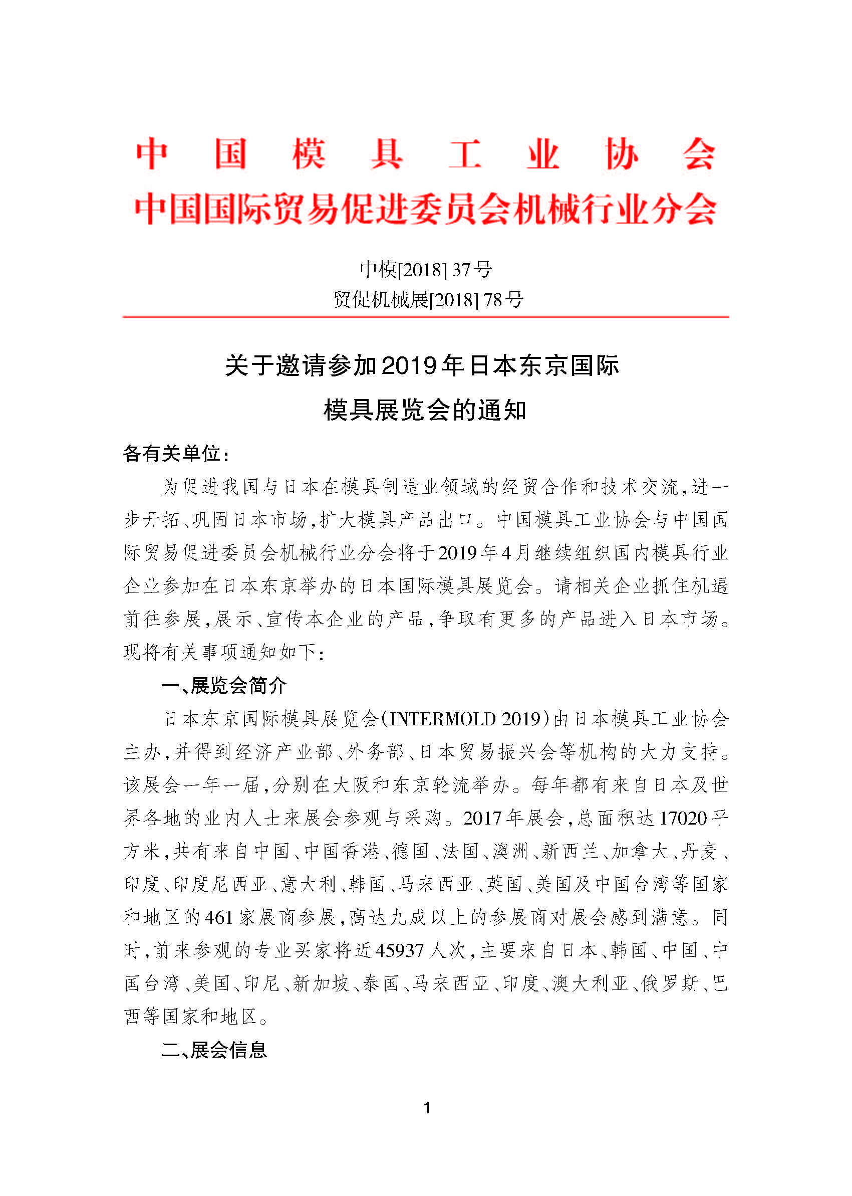 關(guān)于邀請參加2019 年日本東京國際模具展覽會(huì )的通知