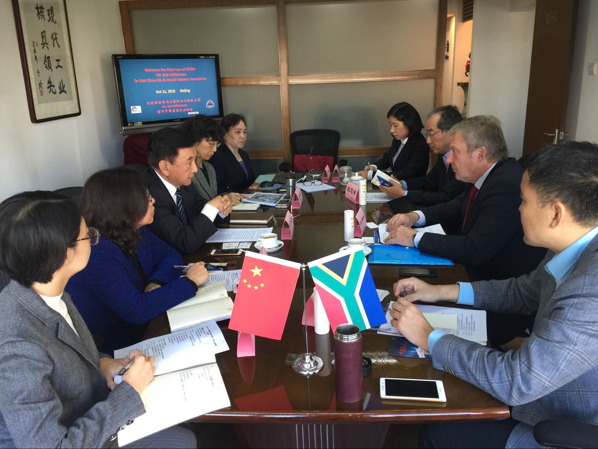 Mr.Bob主席較全面介紹了南非汽車(chē)工業(yè)有關(guān)產(chǎn)量和工具需求的現狀以及北汽中國的投資情況。積極倡議與中國模協(xié)開(kāi)展模具產(chǎn)業(yè)及相關(guān)聯(lián)產(chǎn)業(yè)的多方合作,以支持南非汽車(chē)產(chǎn)業(yè)發(fā)展,特別是新進(jìn)投資的北汽控股在南非的基地汽車(chē)焊裝線(xiàn)、涂裝線(xiàn)、總裝線(xiàn)的情況交流,也是本次會(huì )談?dòng)懻摵罄m中國模具參與可能性的研討。