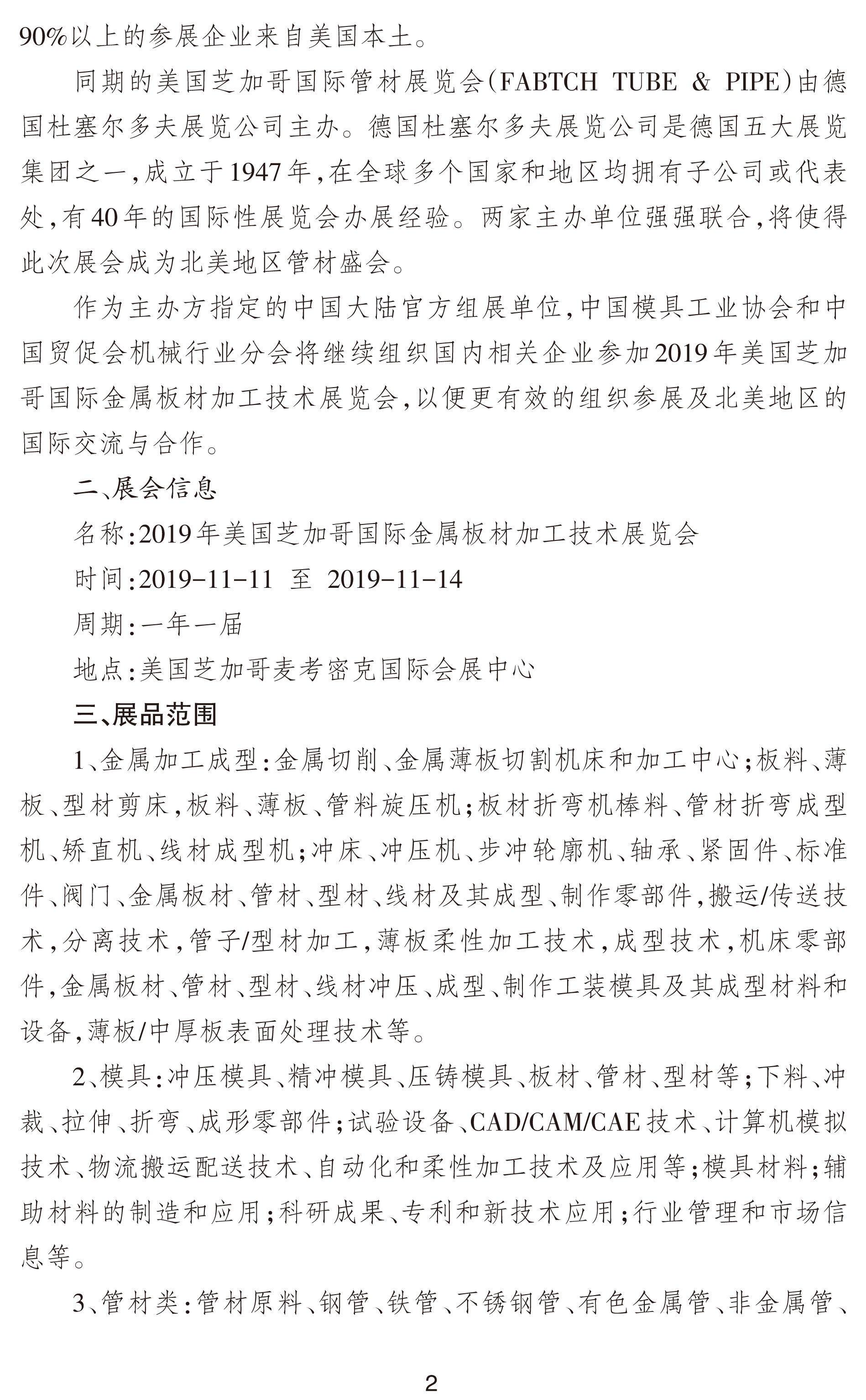 關(guān)于邀請參加2019年美國芝加哥國際金屬板材加工技術(shù)展覽會(huì )的通知