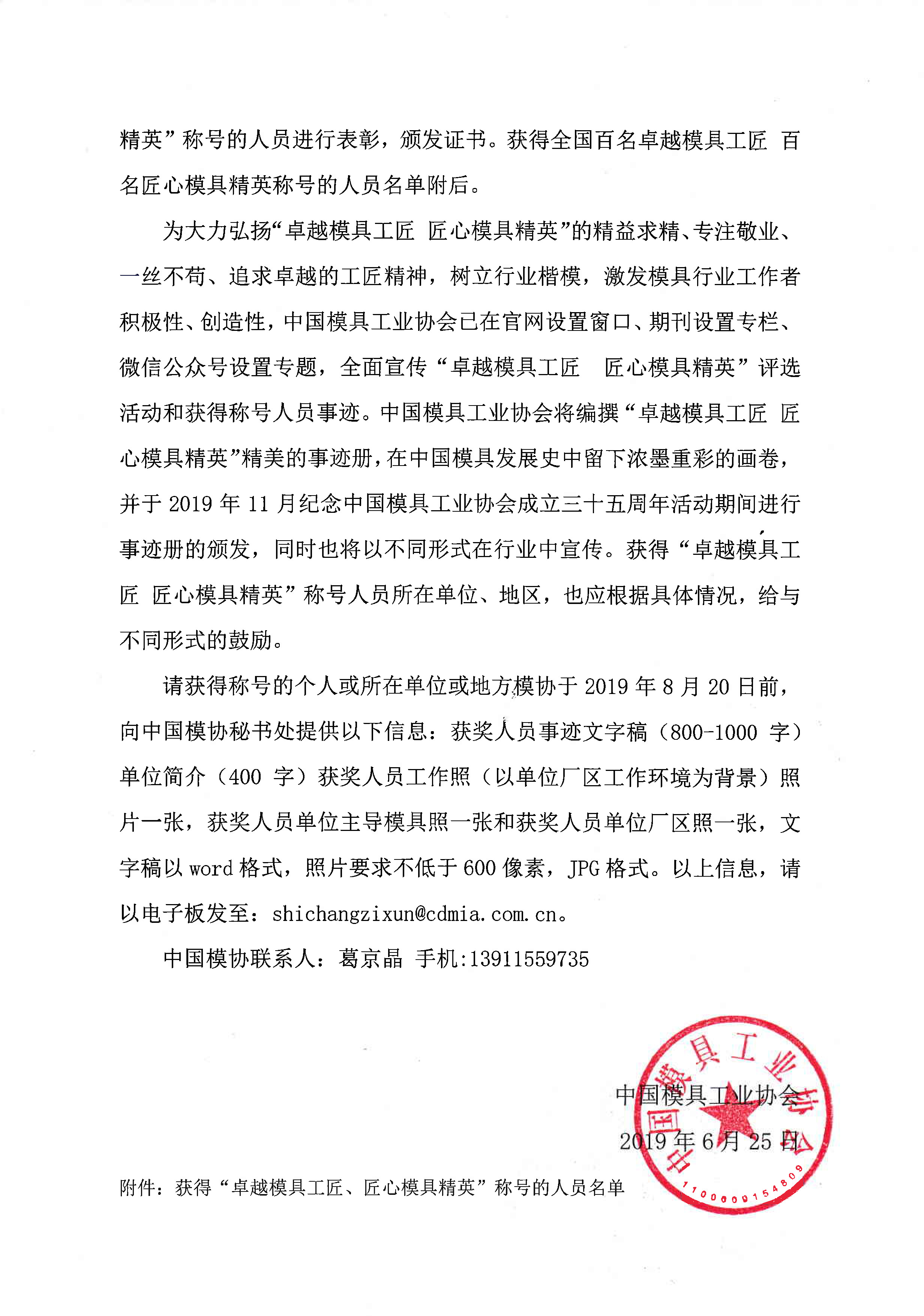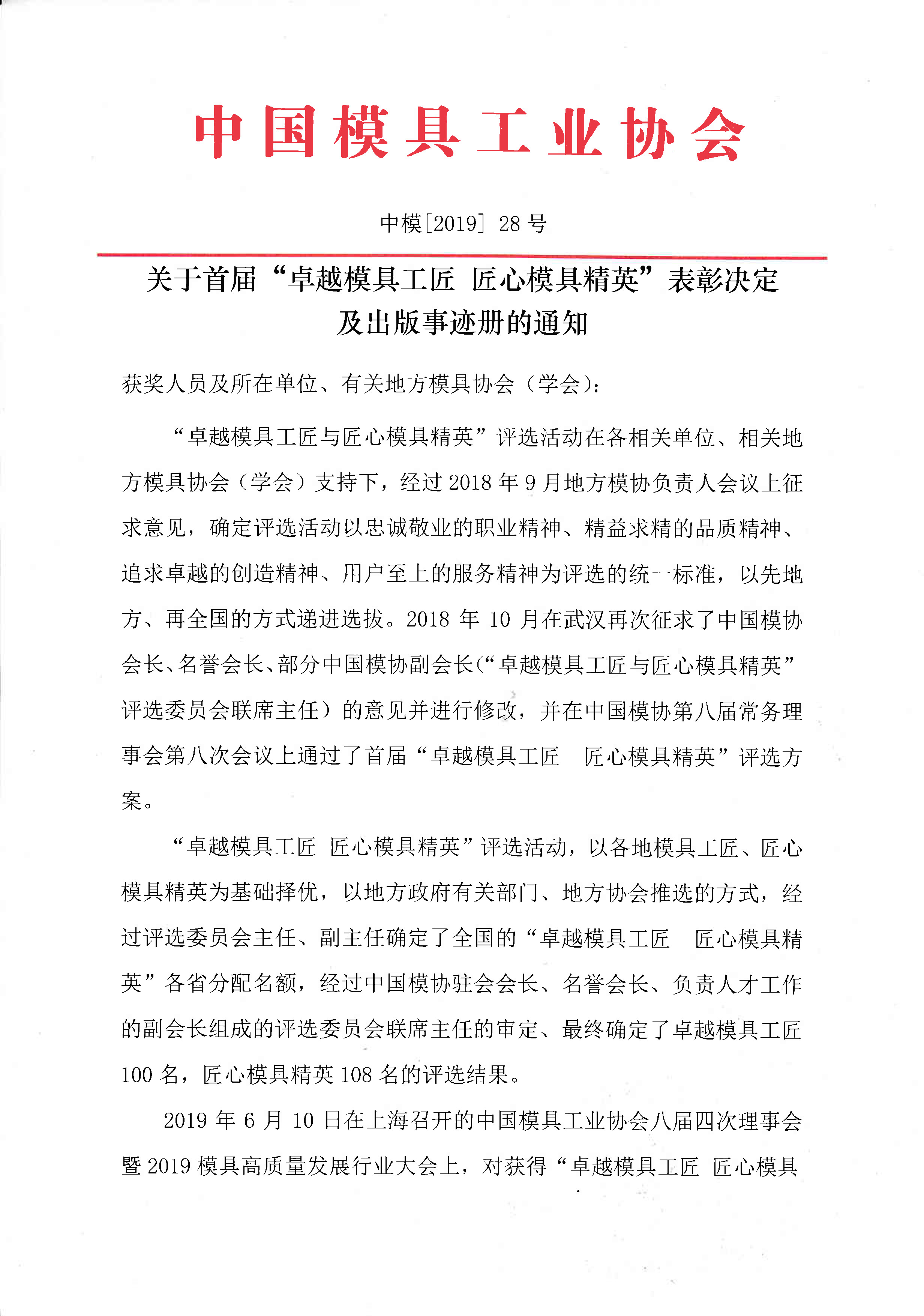 關(guān)于首屆“卓越模具工匠 匠心模具精英”表彰決定及出版事跡冊的通知