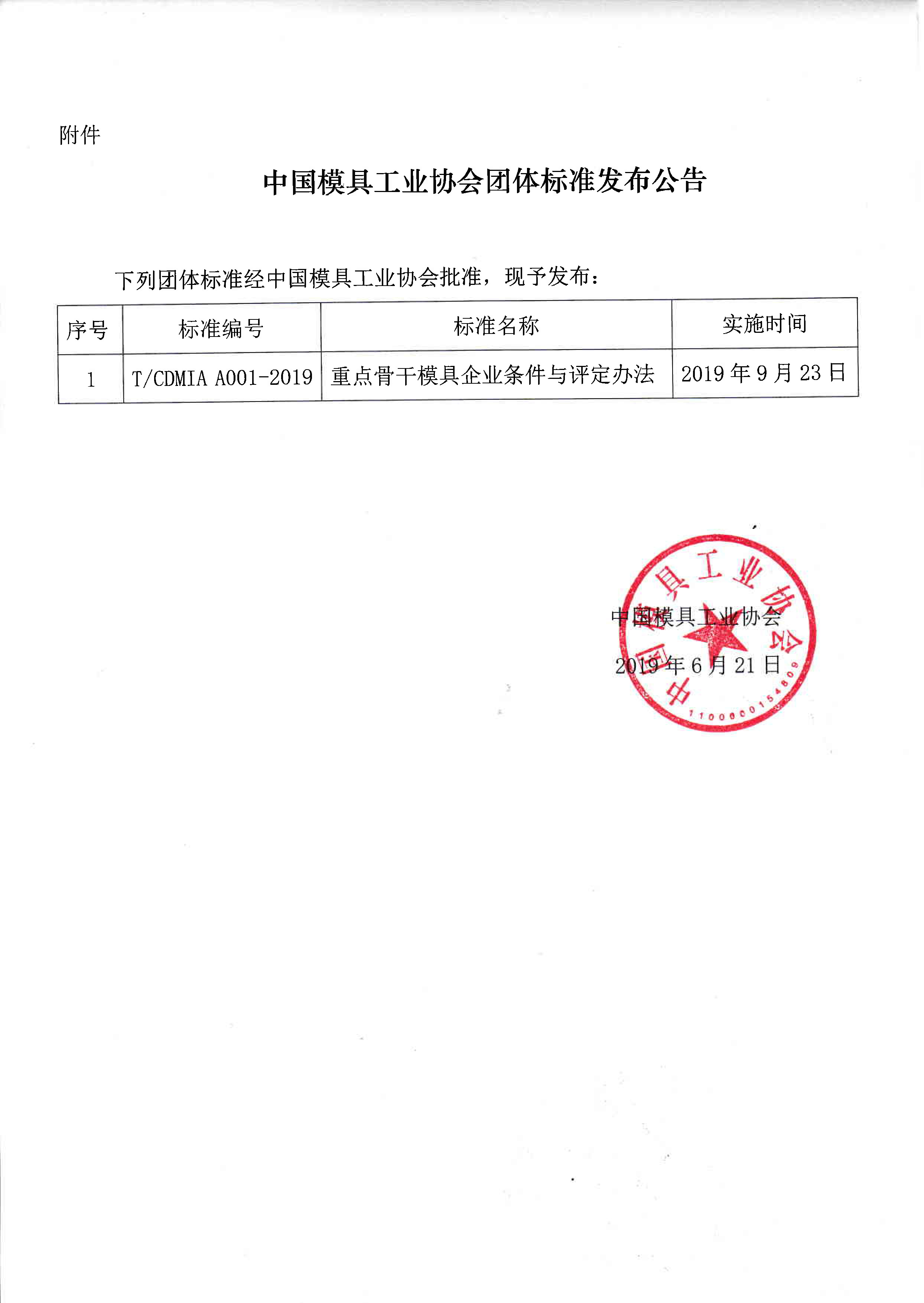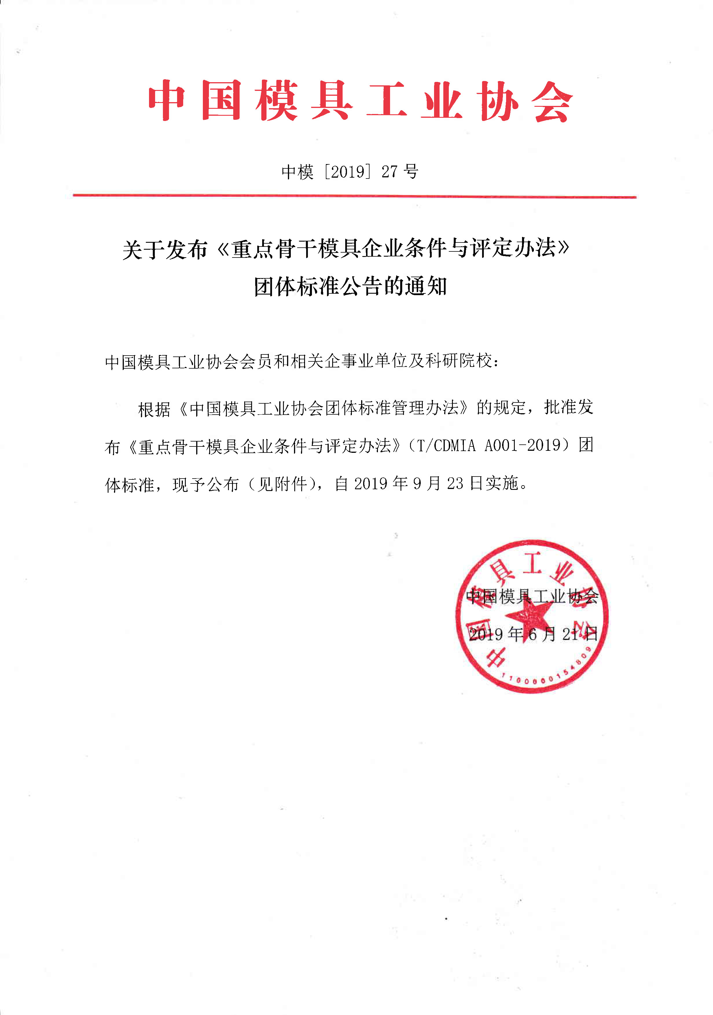 關(guān)于發(fā)布《重點(diǎn)骨干模具企業(yè)條件與評定辦法》團體標準公告的通知