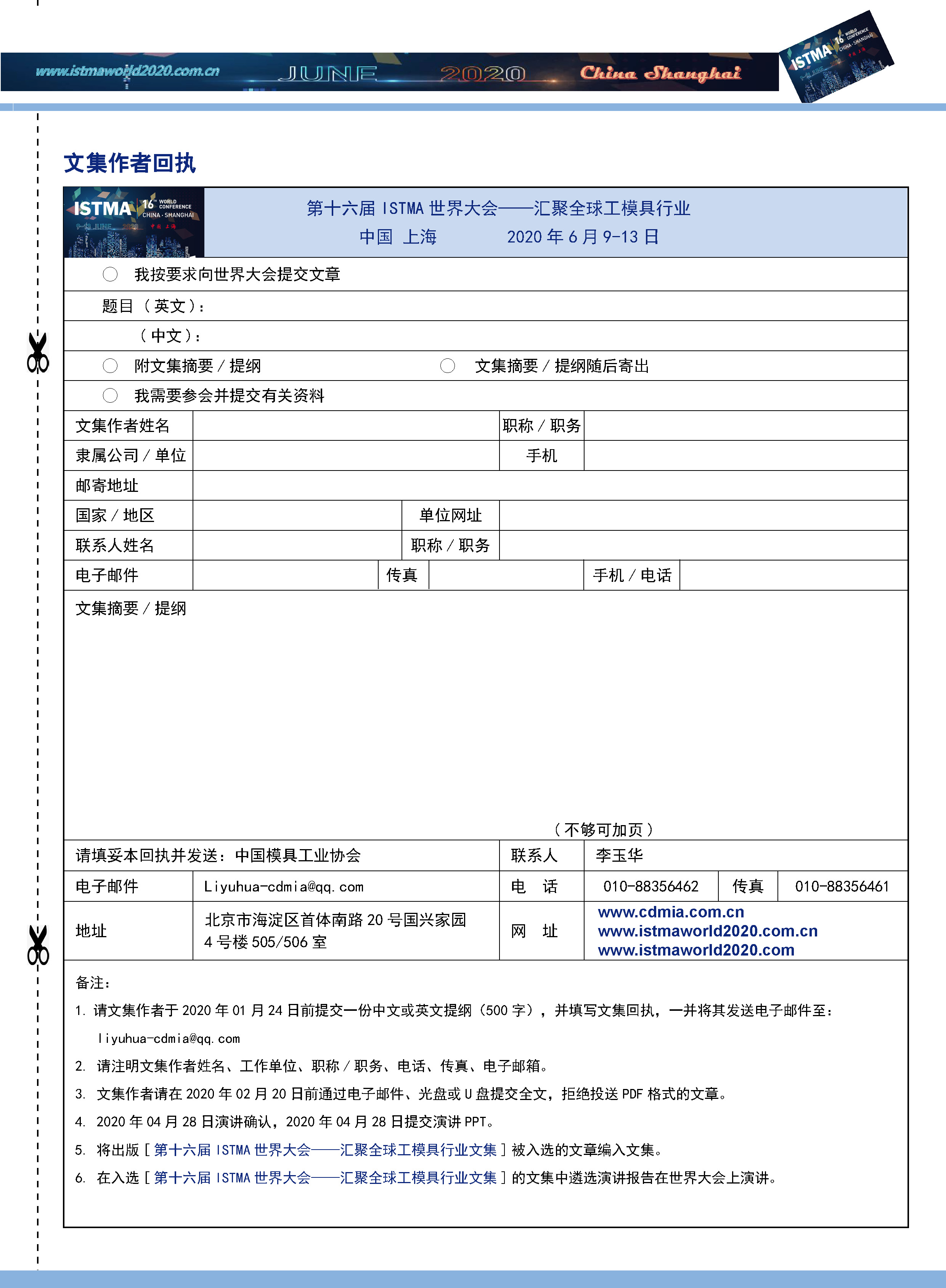 ISTMA世界大會(huì )文集征集-附件回執表.docx