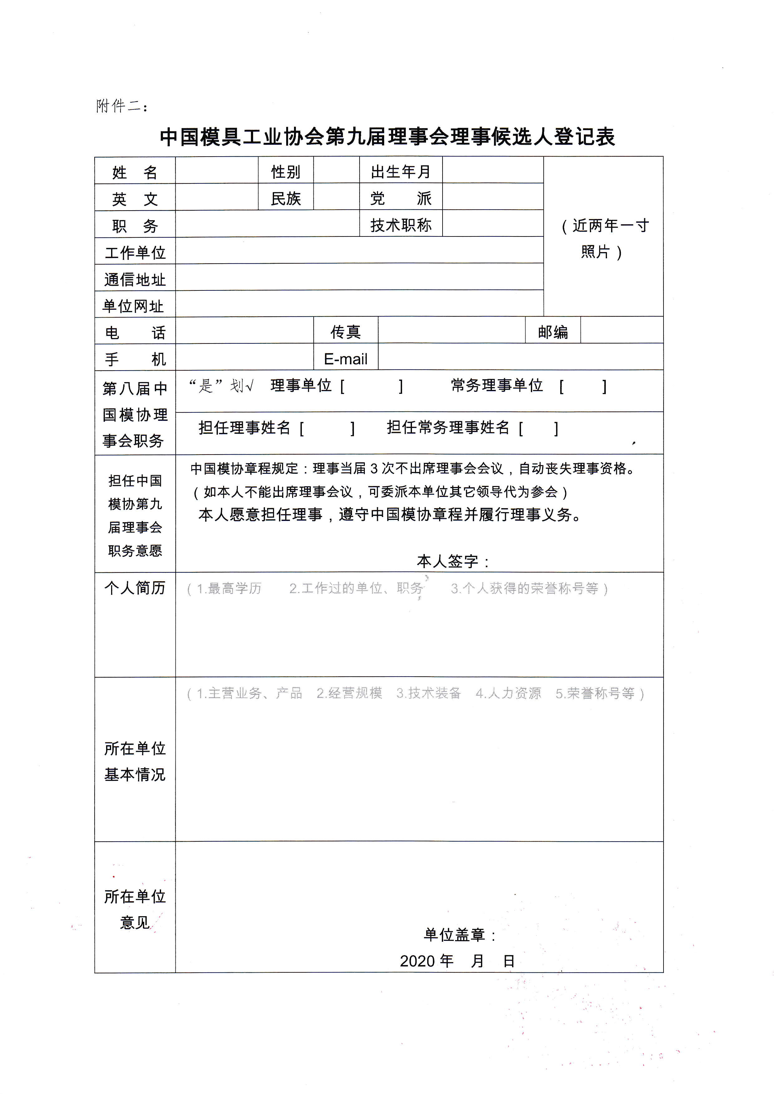 關(guān)于征集中國模具工業(yè)協(xié)會(huì )第九屆理事會(huì )理事候選人的通知
