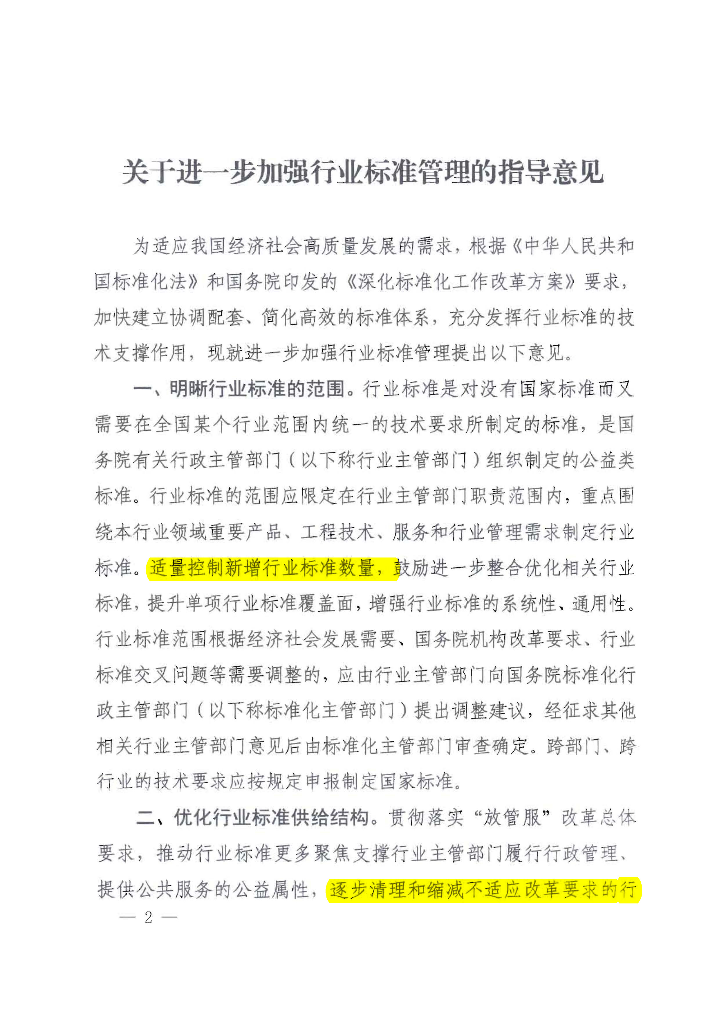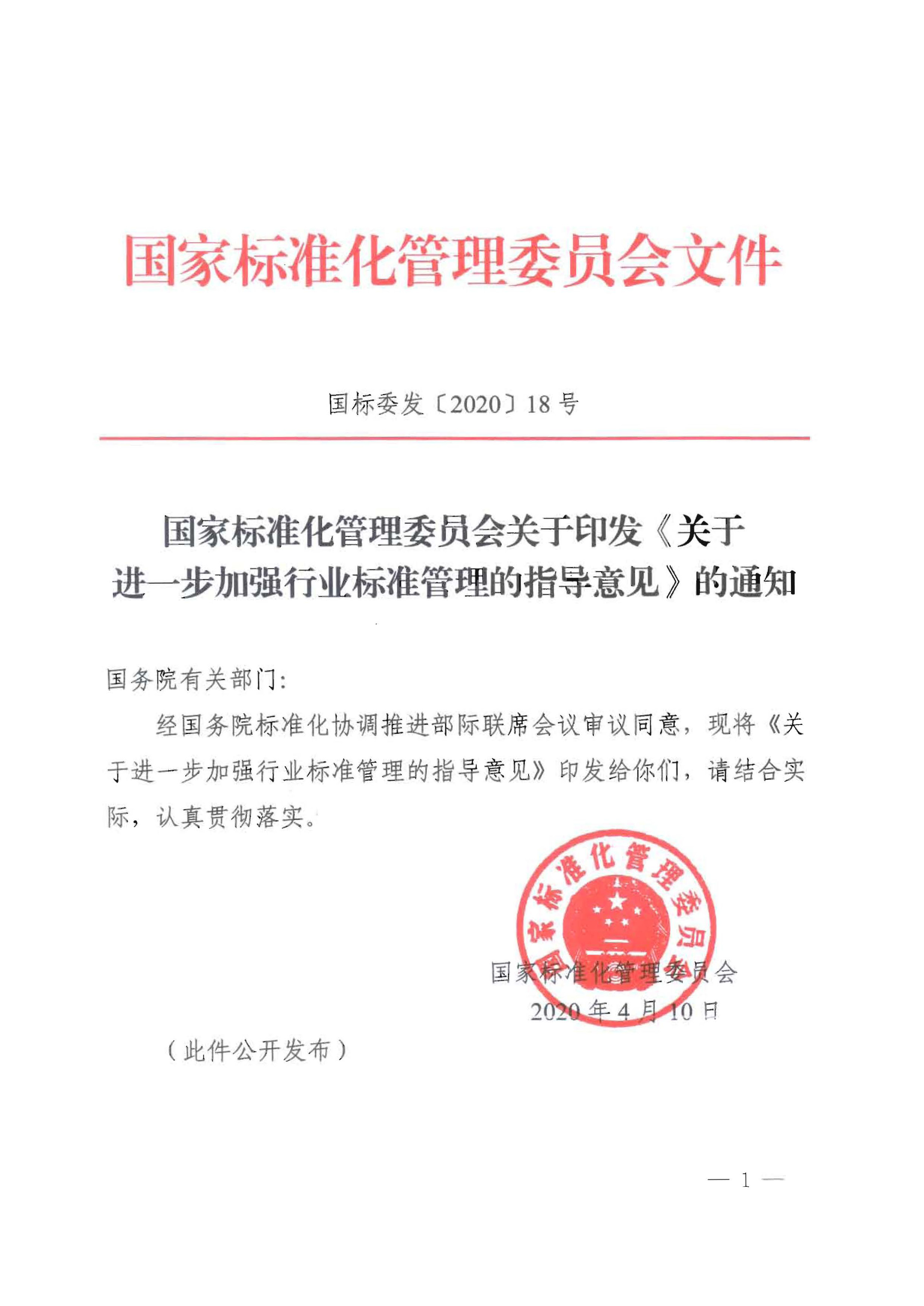 國家標準化管理委員會(huì )關(guān)于印發(fā)《關(guān)于進(jìn)一步加強行業(yè)標準管理的指導意見(jiàn)》的通知