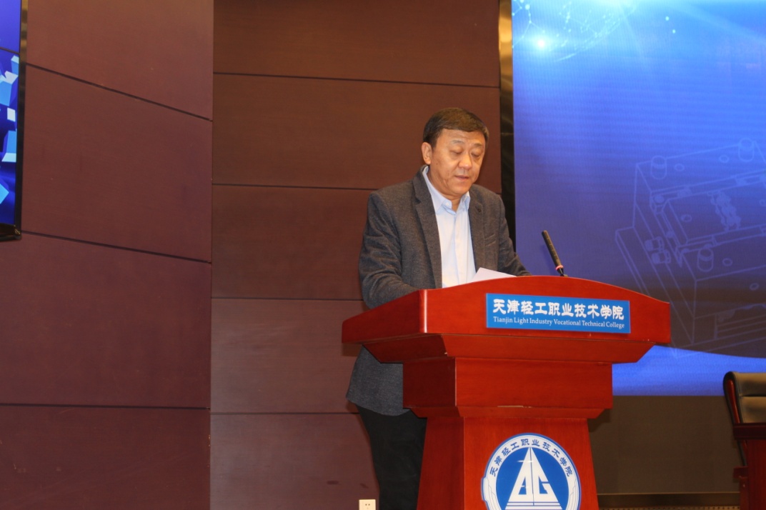 中國模具工業(yè)協(xié)會(huì )職業(yè)教育委員會(huì )主任、天津輕工職業(yè)技術(shù)學(xué)院黨委書(shū)記戴裕崴致辭并就學(xué)院辦學(xué)特色、校企合作及魯班工坊的建設等方面進(jìn)行了介紹,表示天津輕工職業(yè)技術(shù)學(xué)院將熱心、精心、細心、虛心的完成技能大賽的各項承辦工作,做到公開(kāi)、公正、公平,并預祝大賽取得圓滿(mǎn)成功。
