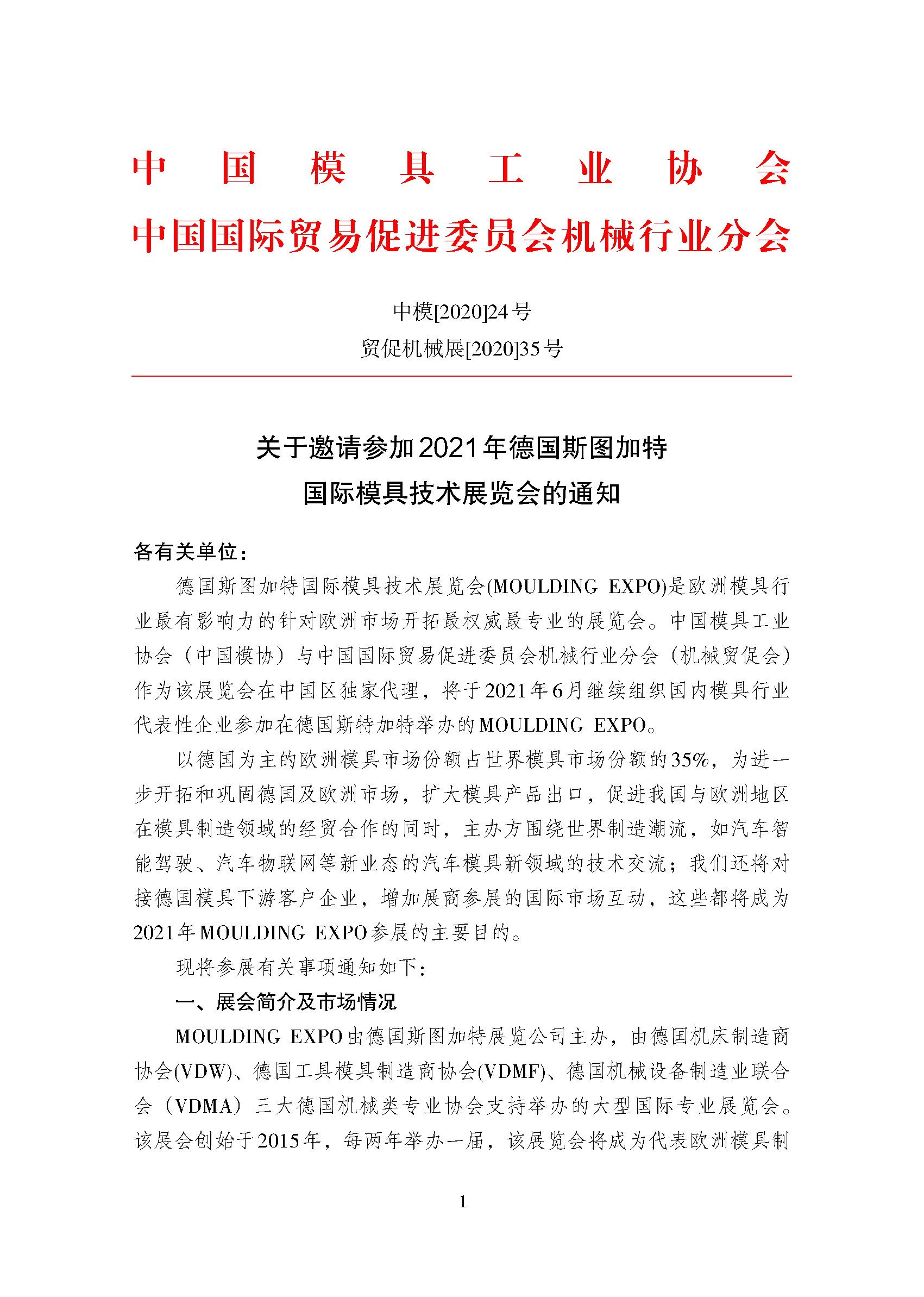 關(guān)于邀請參加2021年德國斯圖加特國際模具技術(shù)展覽會(huì )的通知