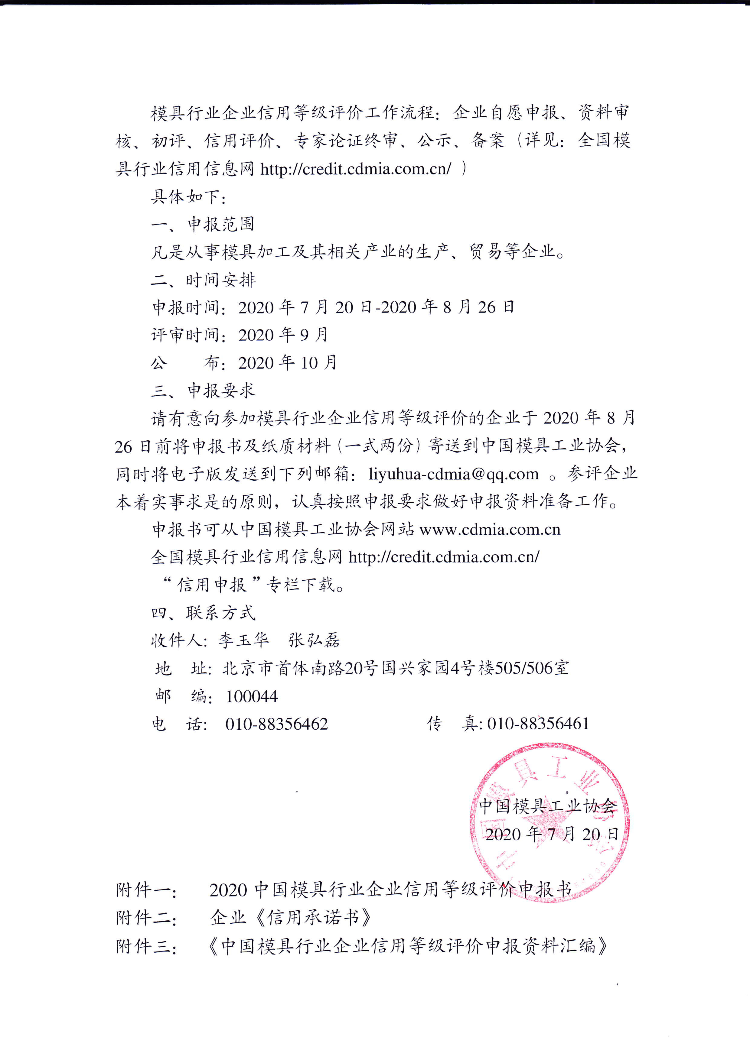 關(guān)于繼續開(kāi)展中國模具行業(yè)企業(yè)信用等級評價(jià)工作的通知