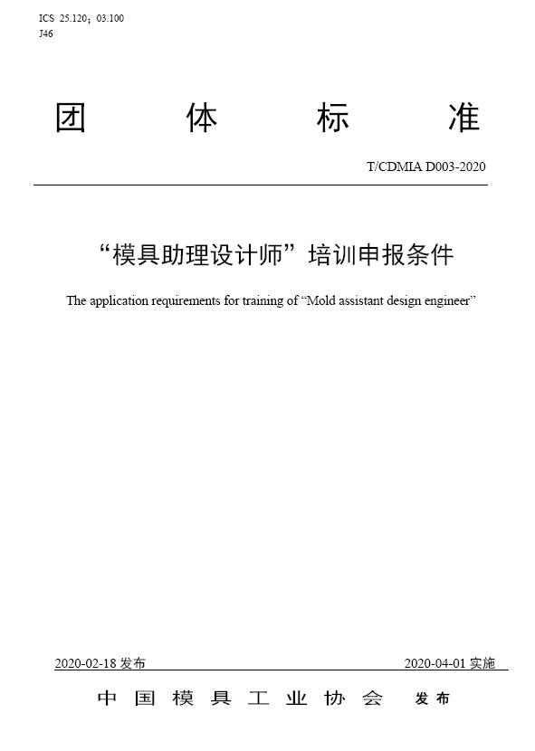 中國模協(xié)標準D003-模具助理設計師培訓申報條件-2020