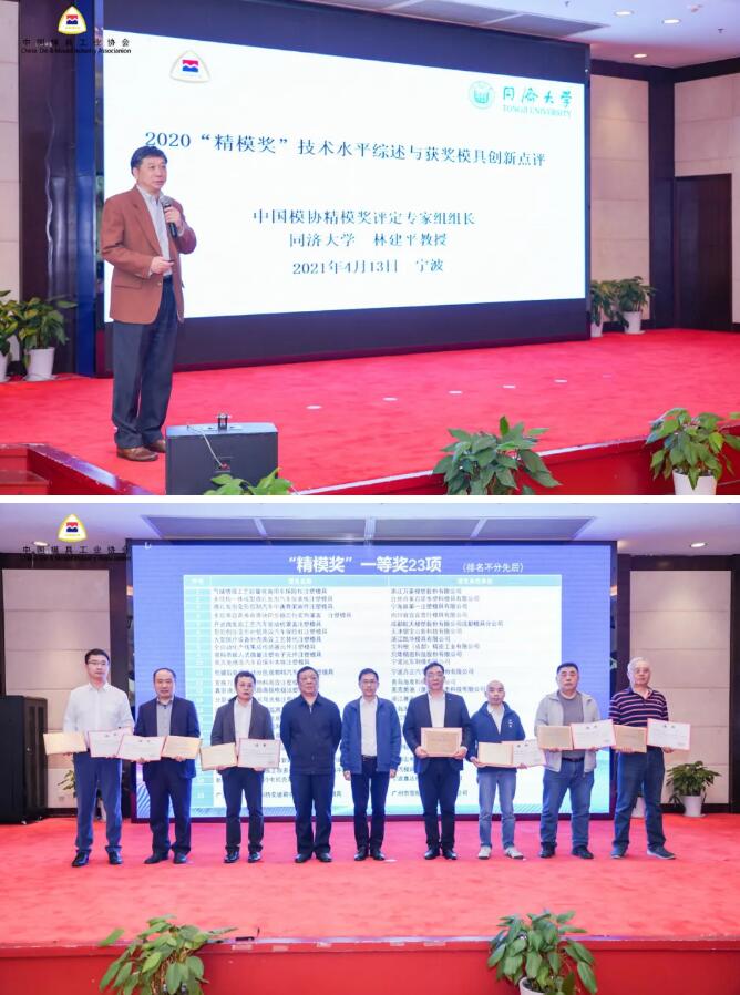 中國模協(xié)精模獎評定專(zhuān)家組組長(cháng)、同濟大學(xué)林建平教授對2020“精模獎”技術(shù)水平綜述與獲獎模具創(chuàng )新進(jìn)行了精彩點(diǎn)評。常會(huì )長(cháng)、黃會(huì )長(cháng)為“精模獎”團隊及“優(yōu)秀供應商”單位頒發(fā)獎牌證書(shū)。