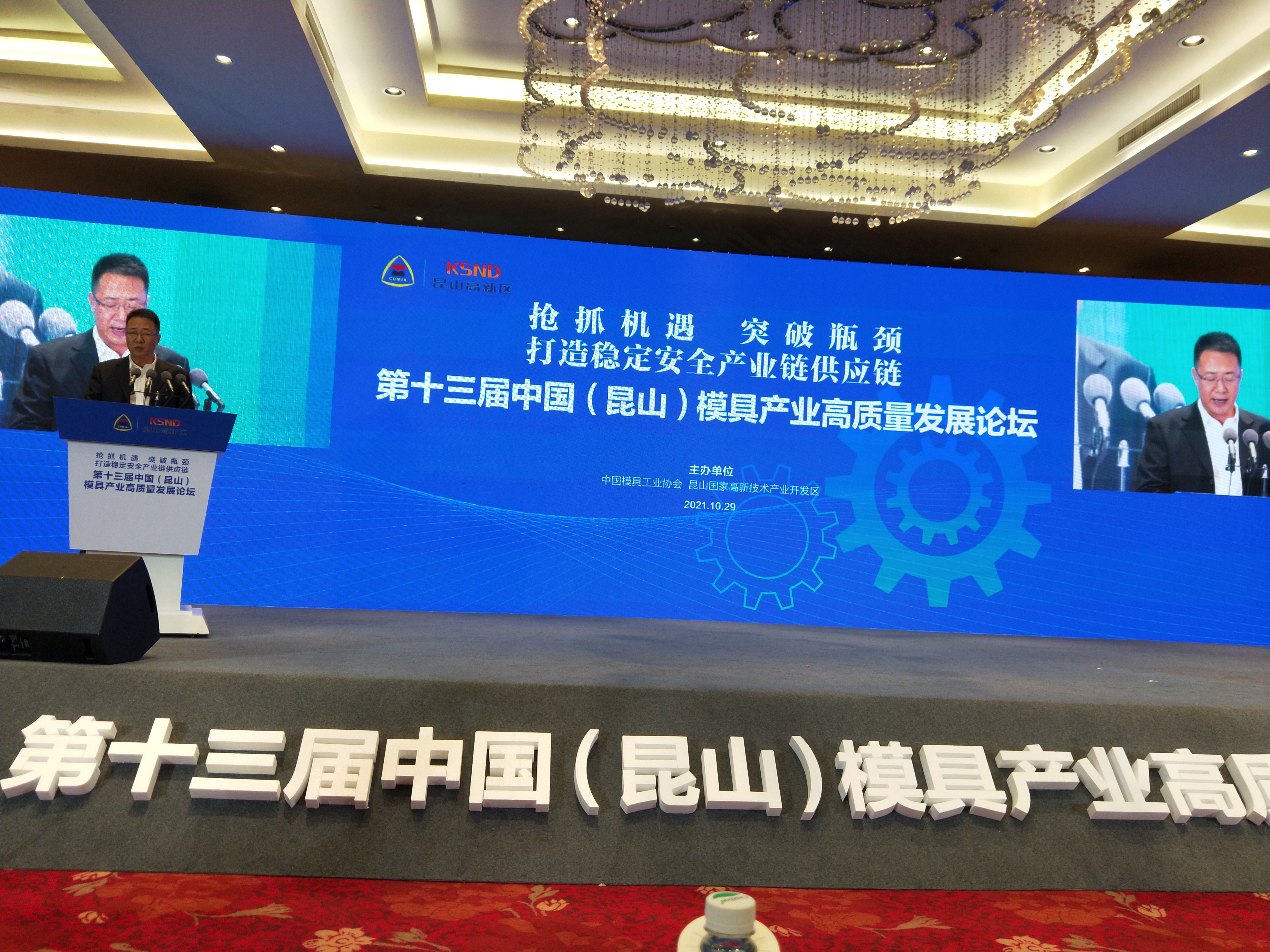 20211029日由中國模具工業(yè)協(xié)會(huì )、昆山國家高新技術(shù)產(chǎn)業(yè)開(kāi)發(fā)區共同主辦的第十三屆中國(昆山)模具產(chǎn)業(yè)高質(zhì)量發(fā)展論壇在昆山皇冠國際會(huì )展酒店成功舉辦。本次論壇舉辦旨在搶抓機遇 突破瓶頸,打造穩定安全產(chǎn)業(yè)鏈供應鏈,助力模具產(chǎn)業(yè)高質(zhì)量發(fā)展。來(lái)自模具及上下游行業(yè)的專(zhuān)業(yè)人員200余人參加。