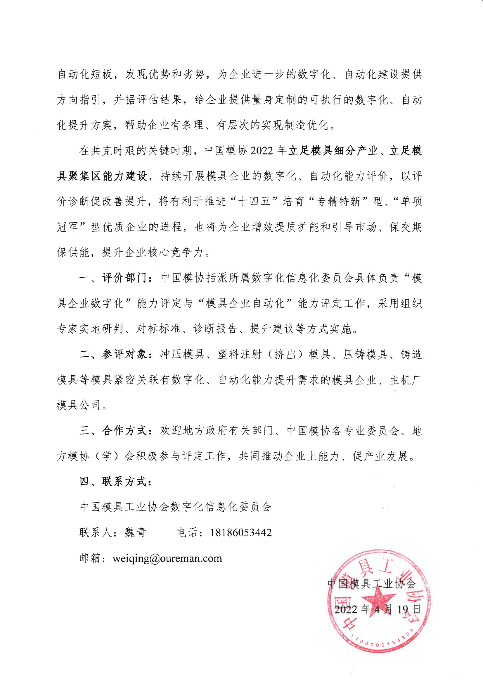 “模具企業(yè)數字化”能力評定與“模具企業(yè)自動(dòng)化”能力評定邀請函