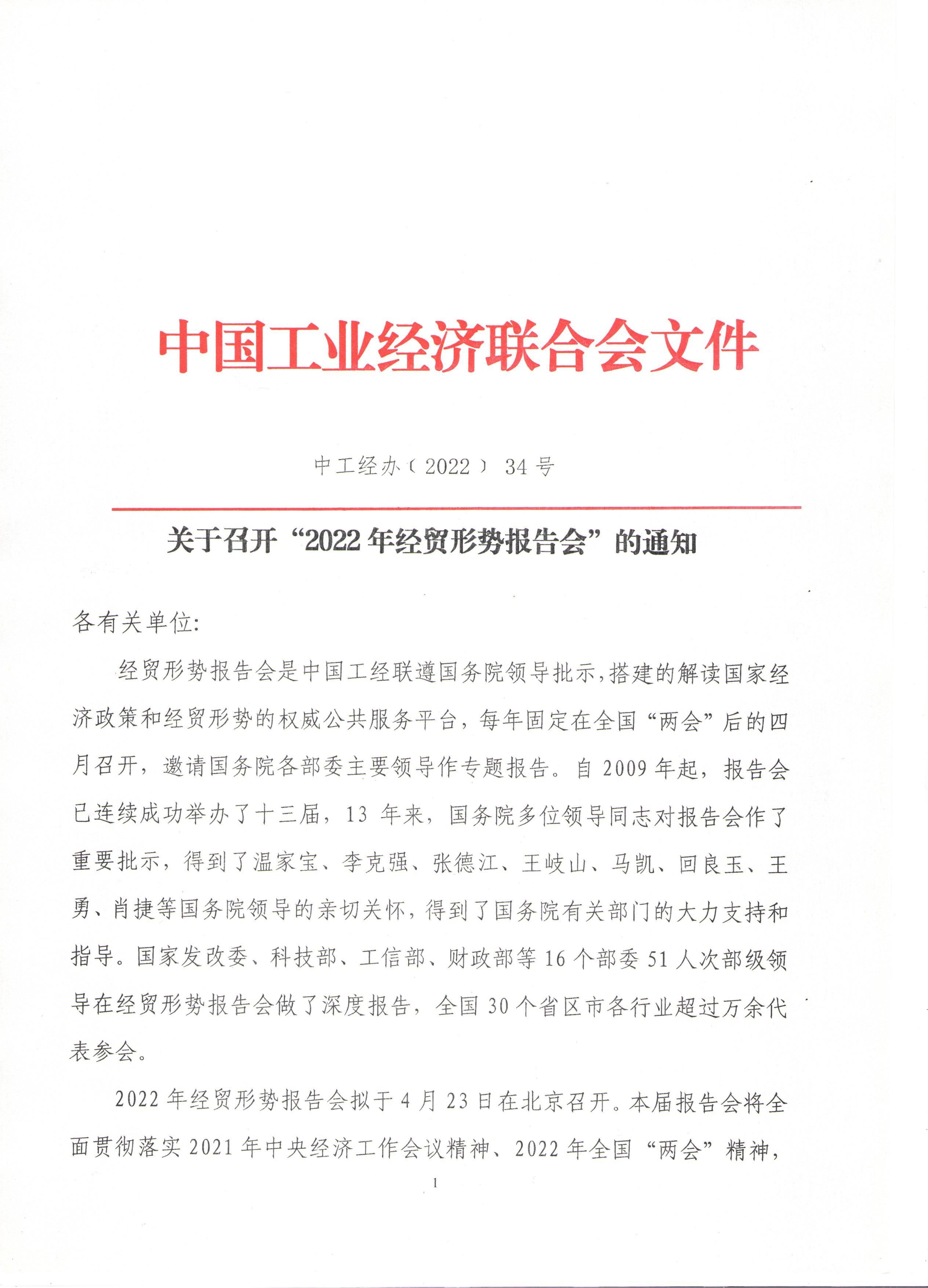 關(guān)于召開(kāi)“2022年經(jīng)貿形勢報告會(huì )”的通知