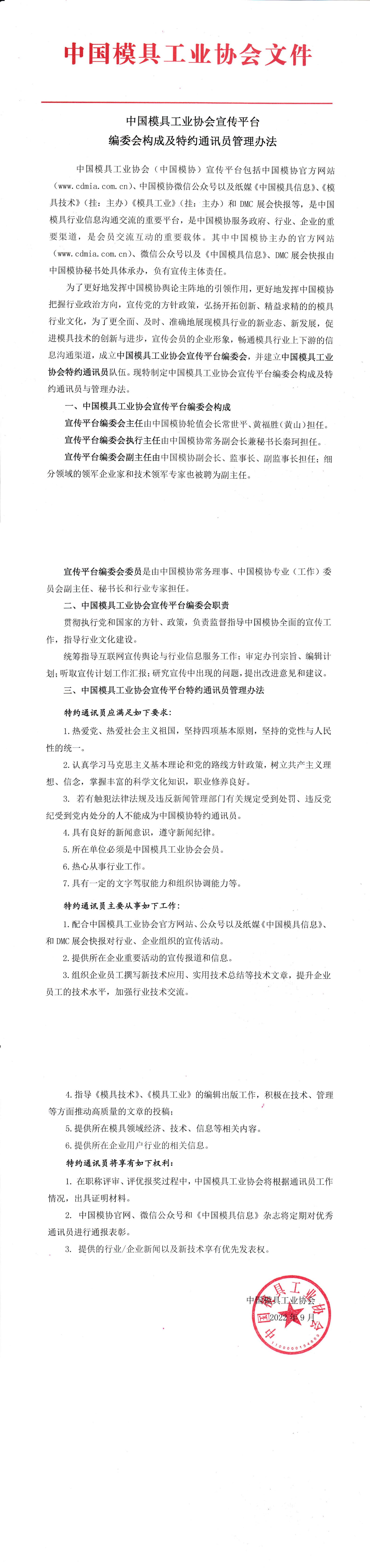 中國模具工業(yè)協(xié)會(huì )宣傳平臺編委會(huì )構成及特約通訊員管理辦法