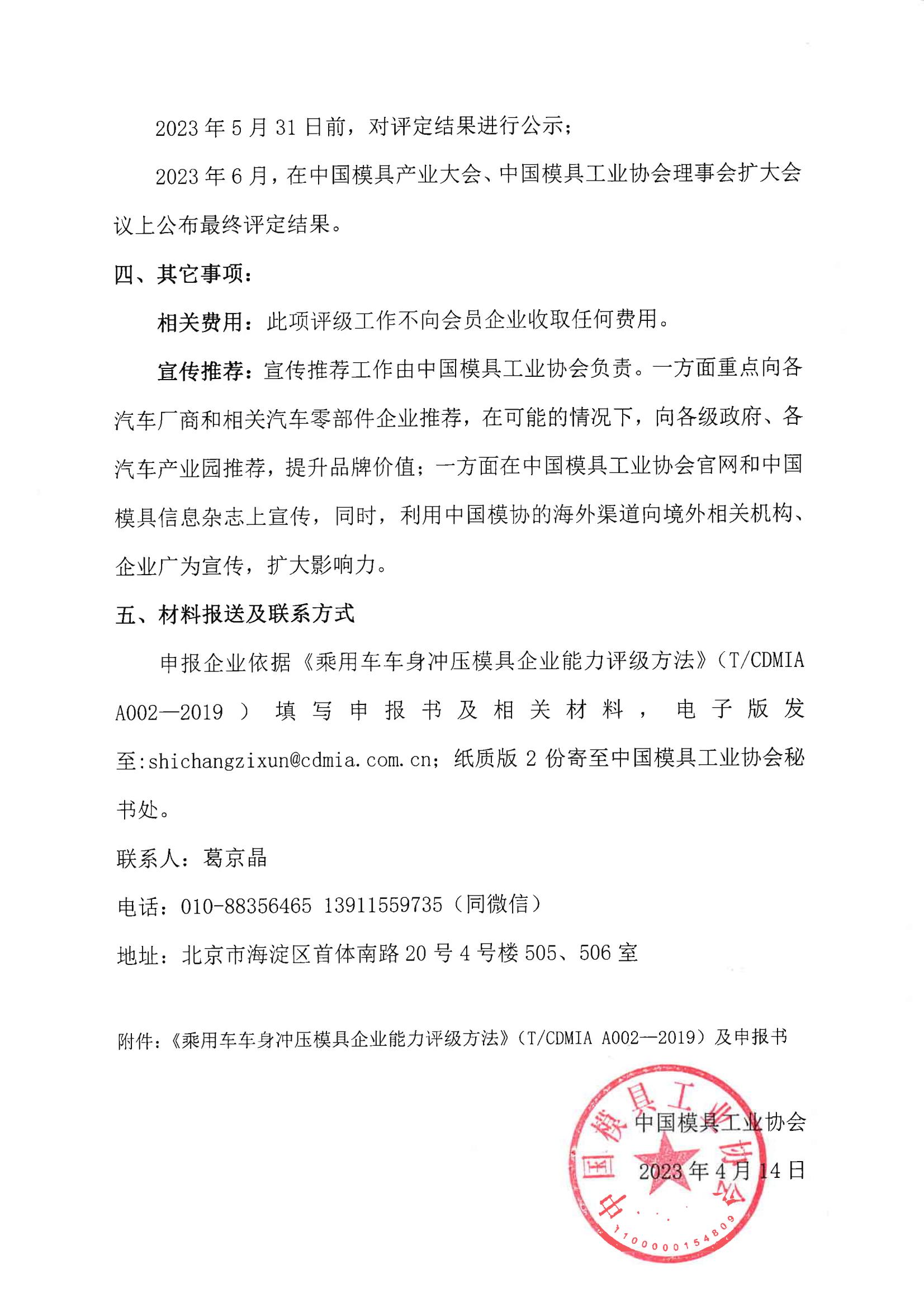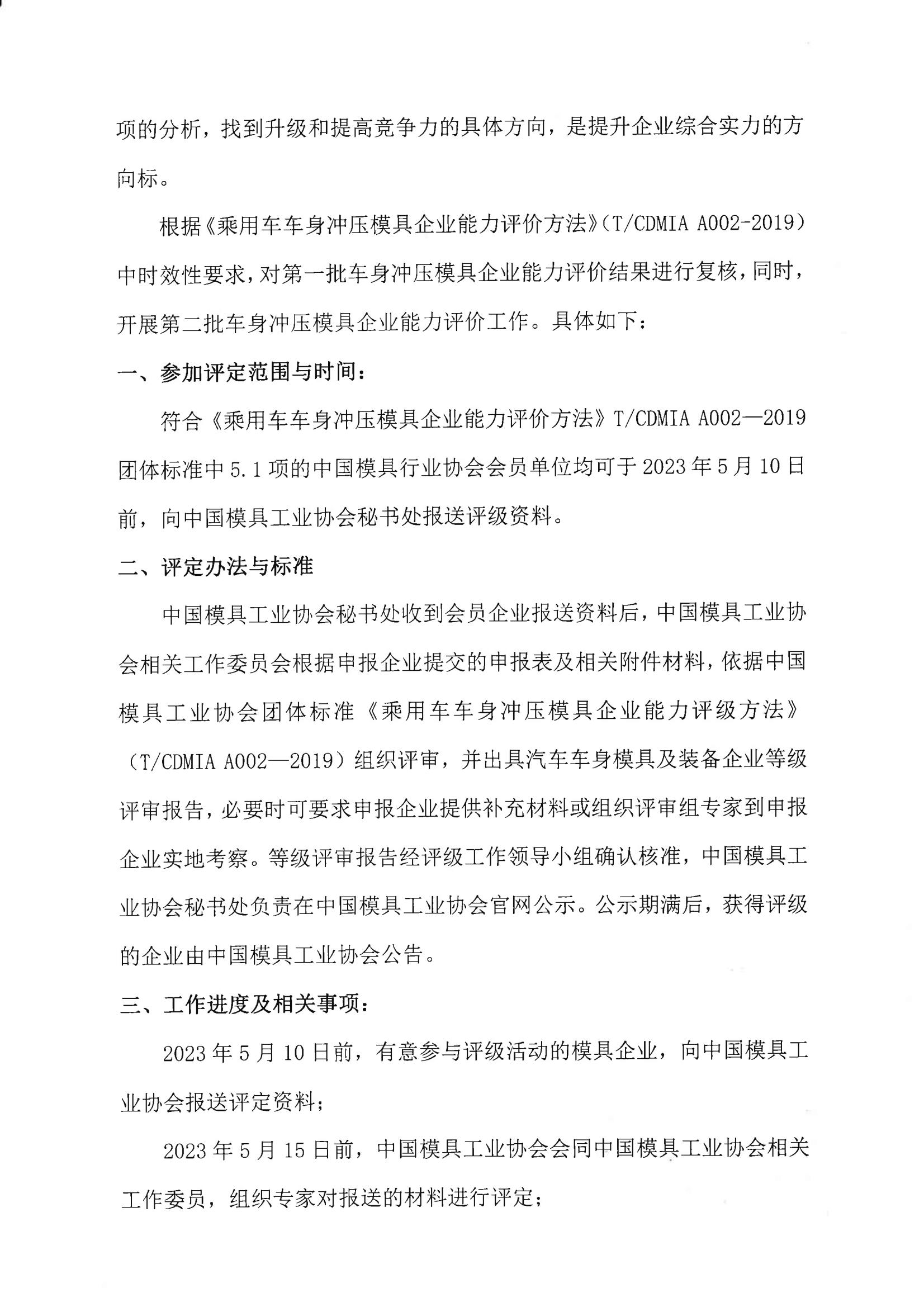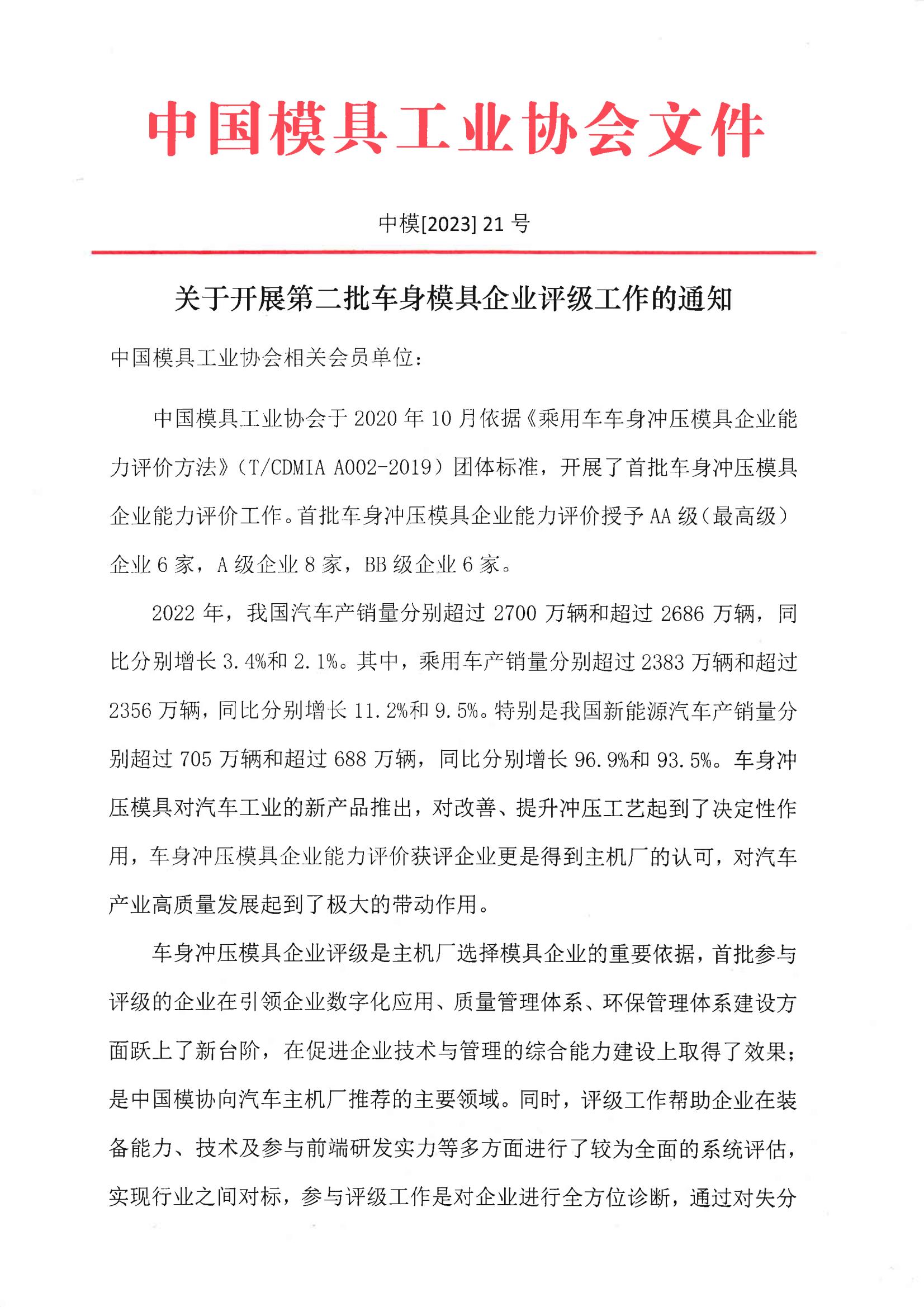 關(guān)于開(kāi)展第二批車(chē)身模具企業(yè)評級工作的通知
