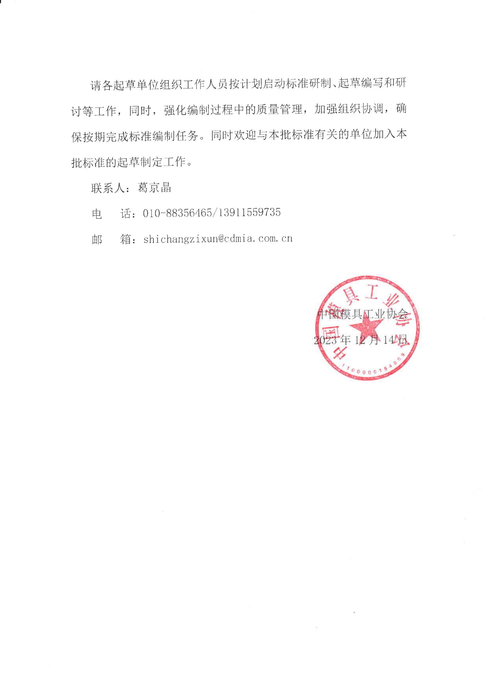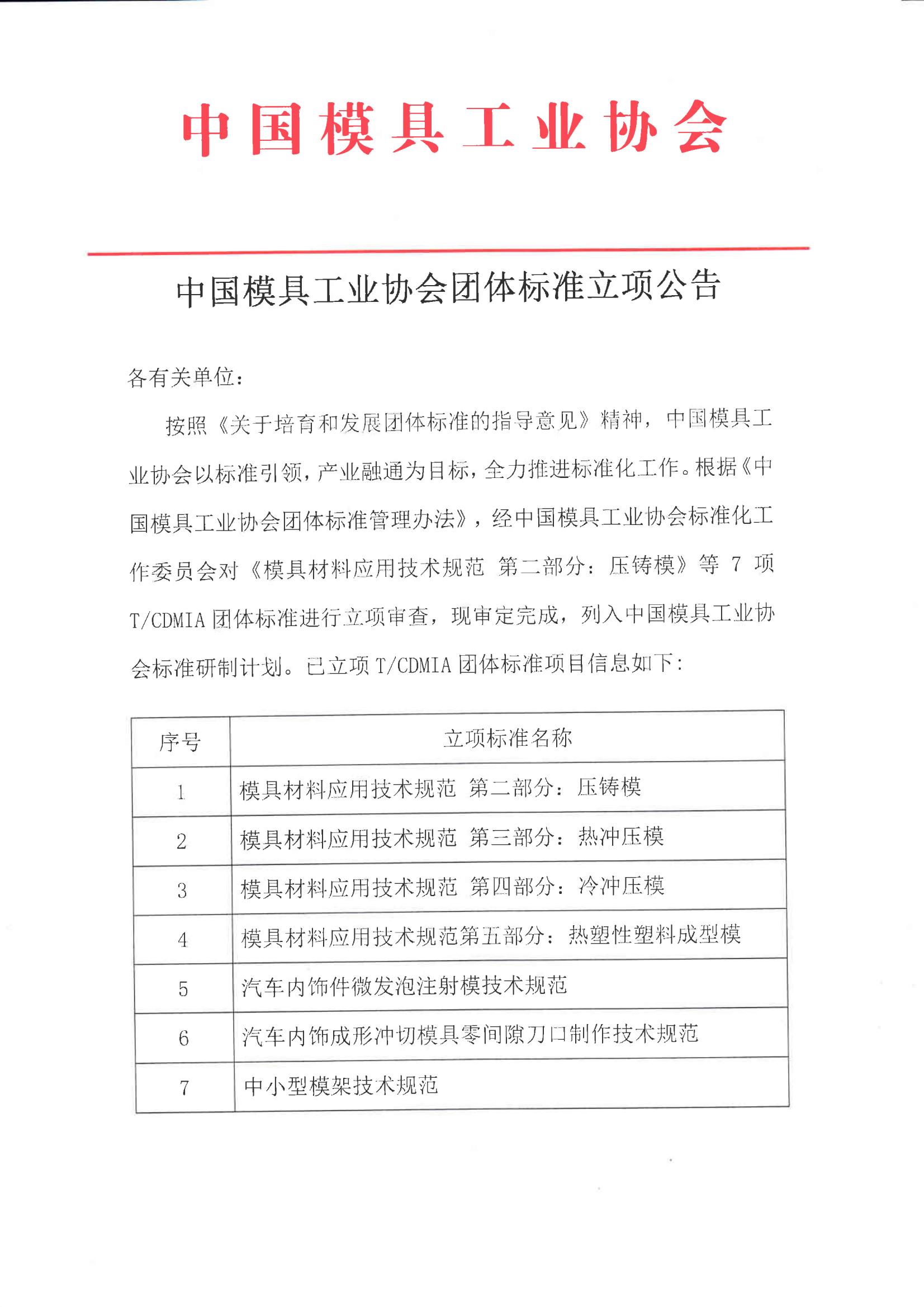 中國模具工業(yè)協(xié)會(huì )團體標準立項公告