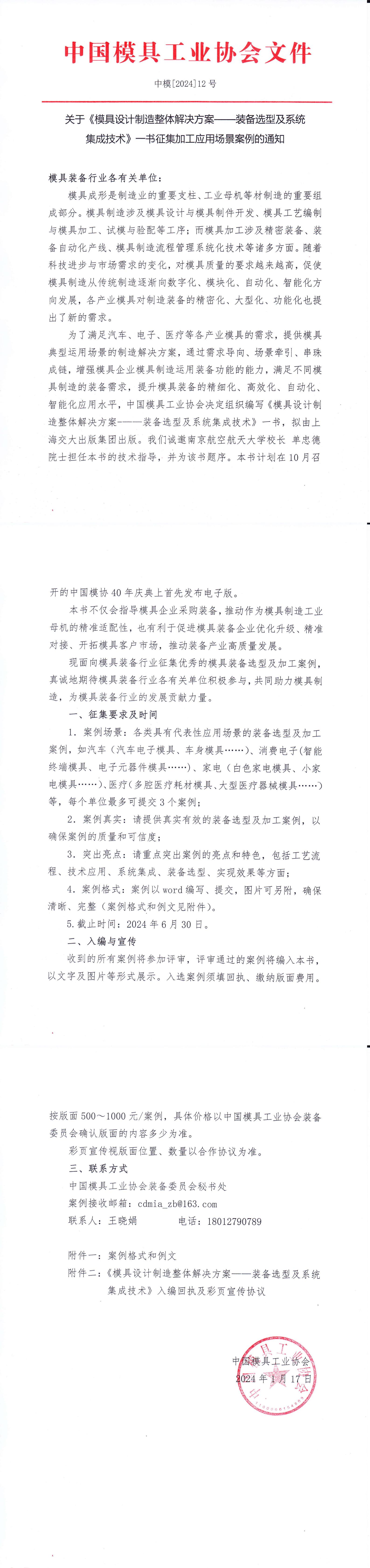 關(guān)于《模具設計制造整體解決方案——裝備選型及系統集成技術(shù)》一書(shū)征集加工應用場(chǎng)景案例的通知