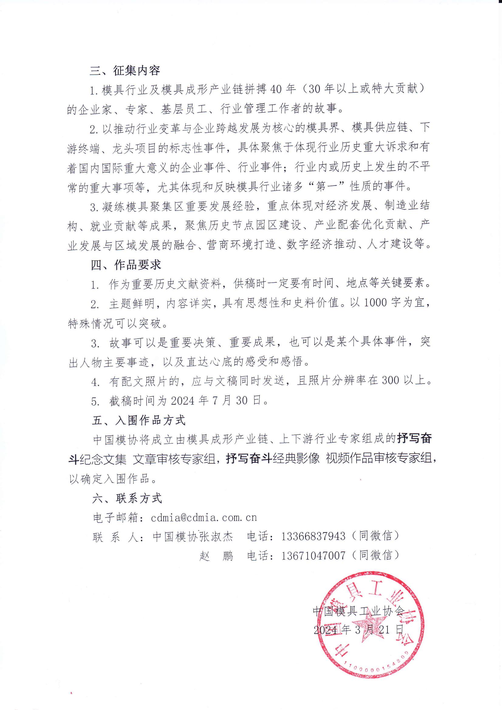 關(guān)于征集中國模具工業(yè)協(xié)會(huì )成立40周年文集 視頻的函