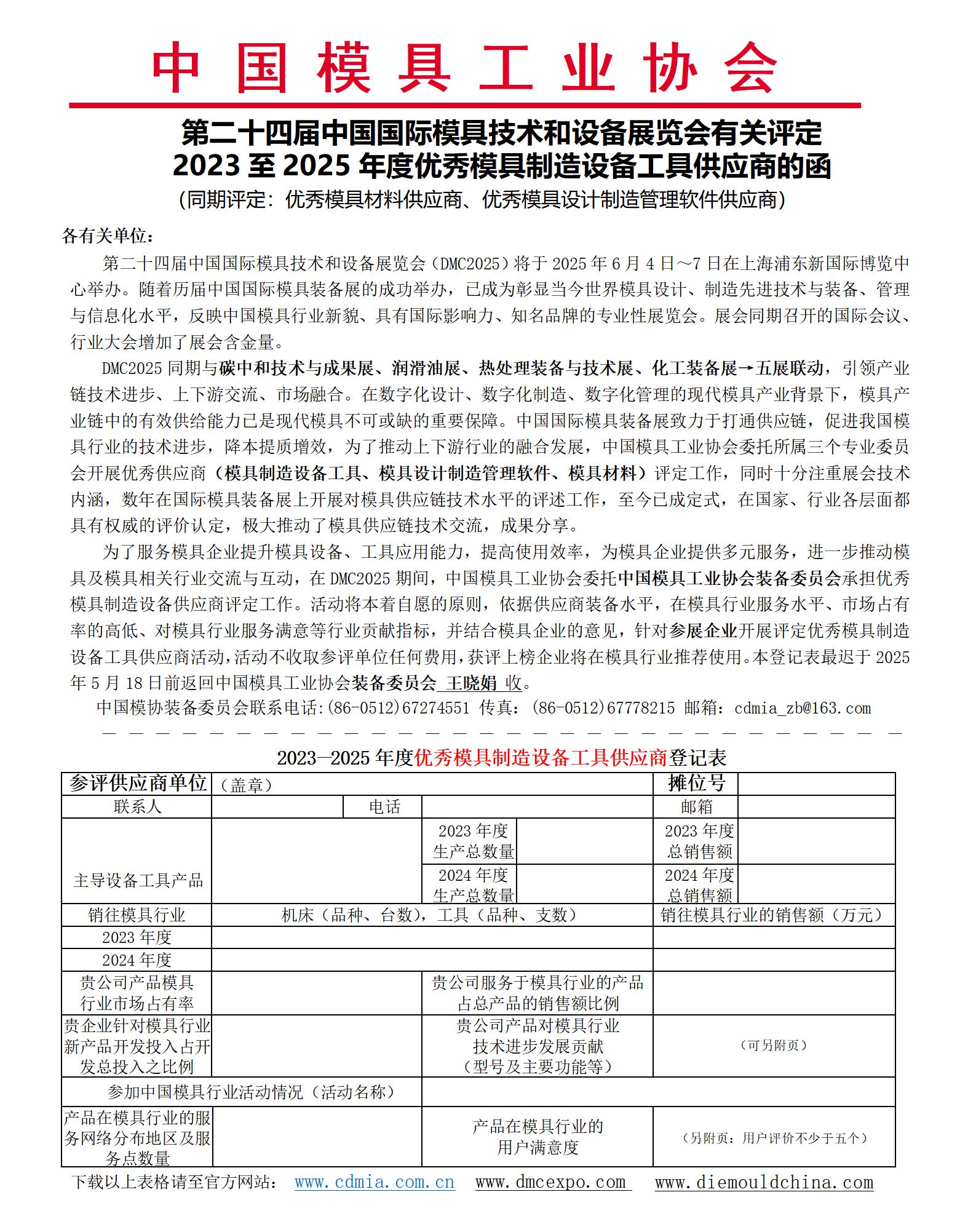 2023至2025年度優(yōu)秀模具制造設備工具供應商的函