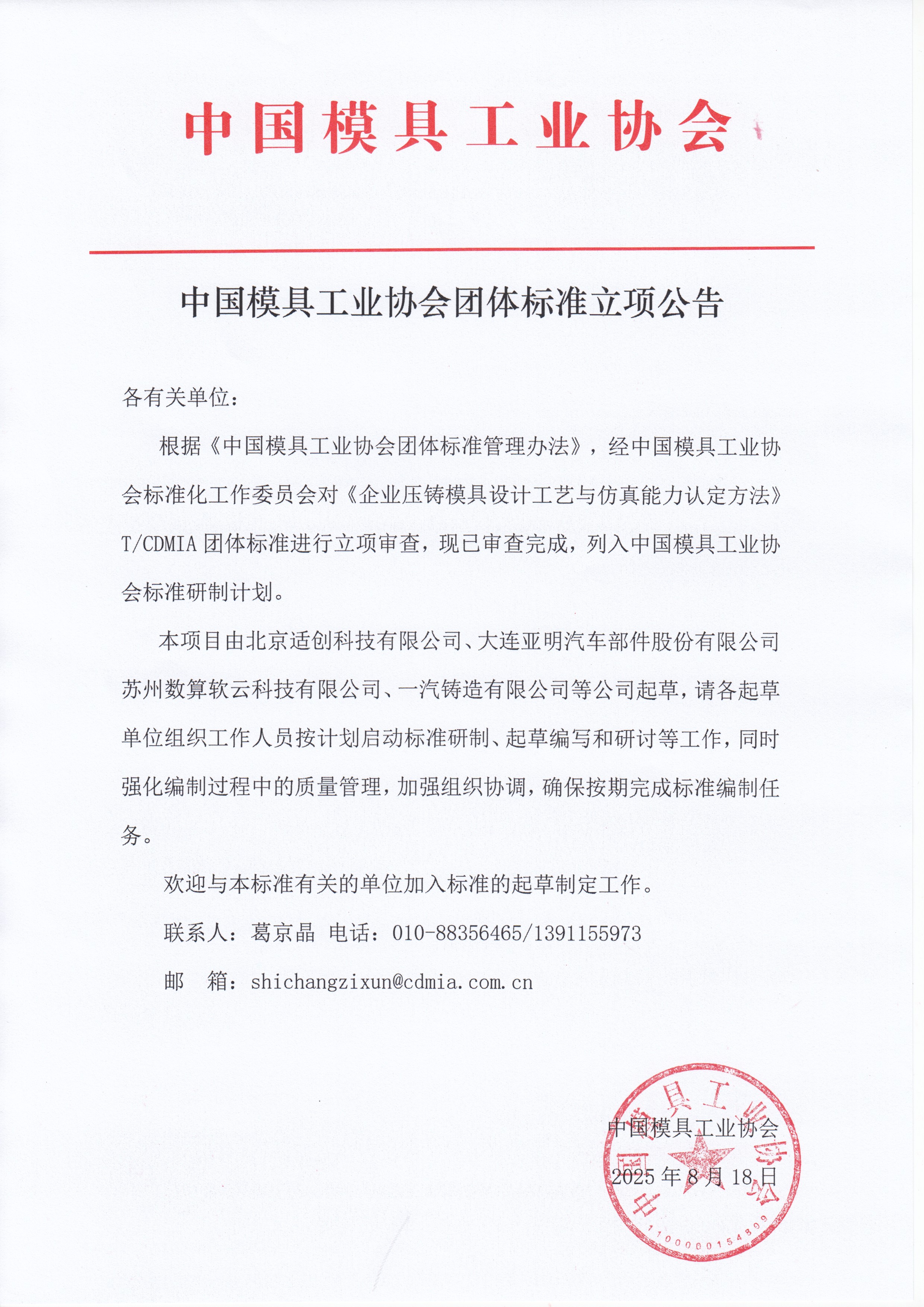 中國模具工業(yè)協(xié)會(huì )團體標準立項公告